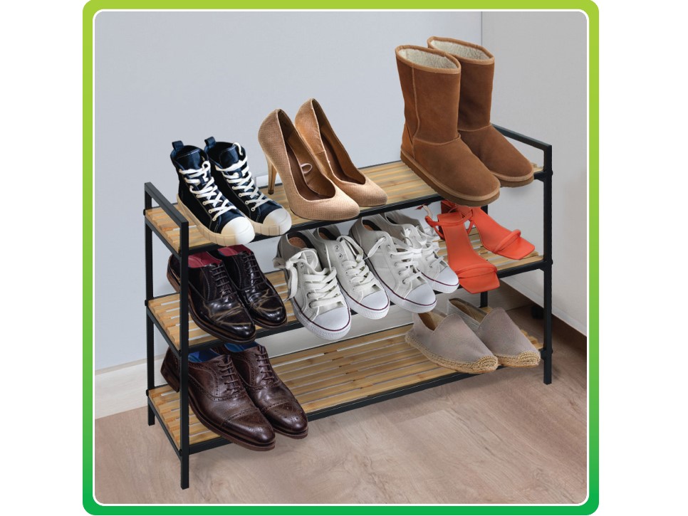 shoe rack bamboo and metal 3 tier
